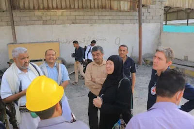 إطلع محافظ محافظة الحديدة محمد عياش قحيم ومدير مكتب بعثة الصليب الأحمر الدولية بمحافظة الحديدة إلكساندر إيكوي على حجم الاضرار التي تعرض له مبنى فرع المؤسسة العامة للإتصالات بالمحافظة والمنازل المجاورة له جراء قصف طيران العدوان .